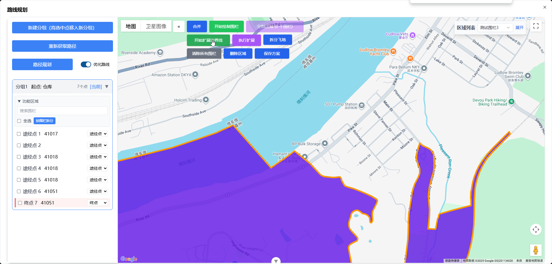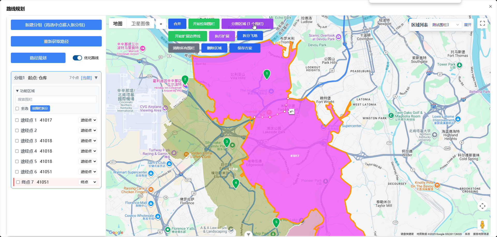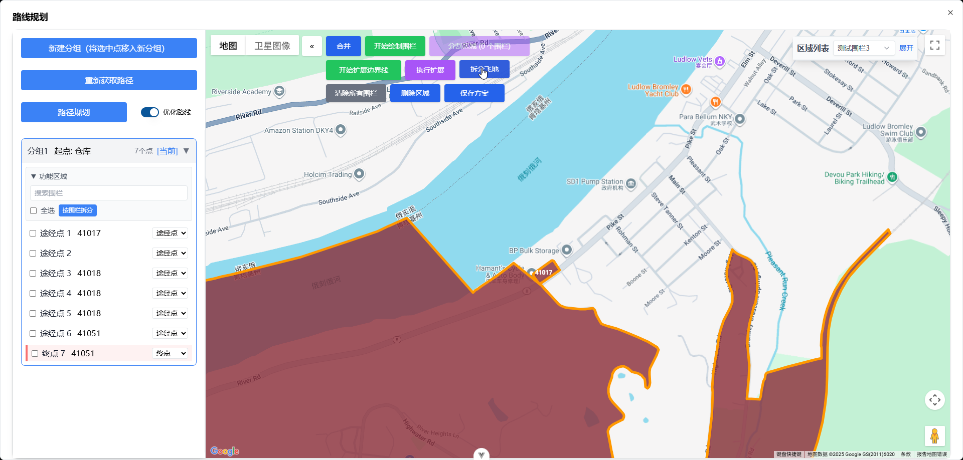 点击停止绘制围栏后,可以拖动点来继续调整分割线段