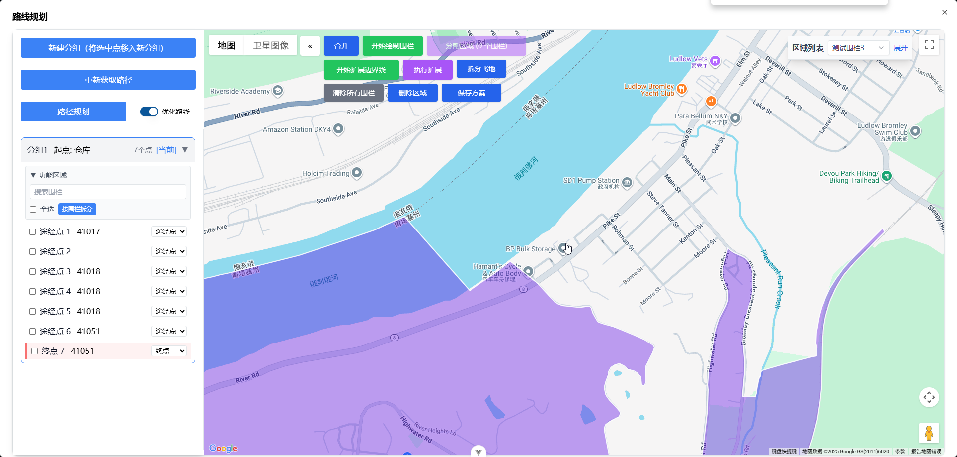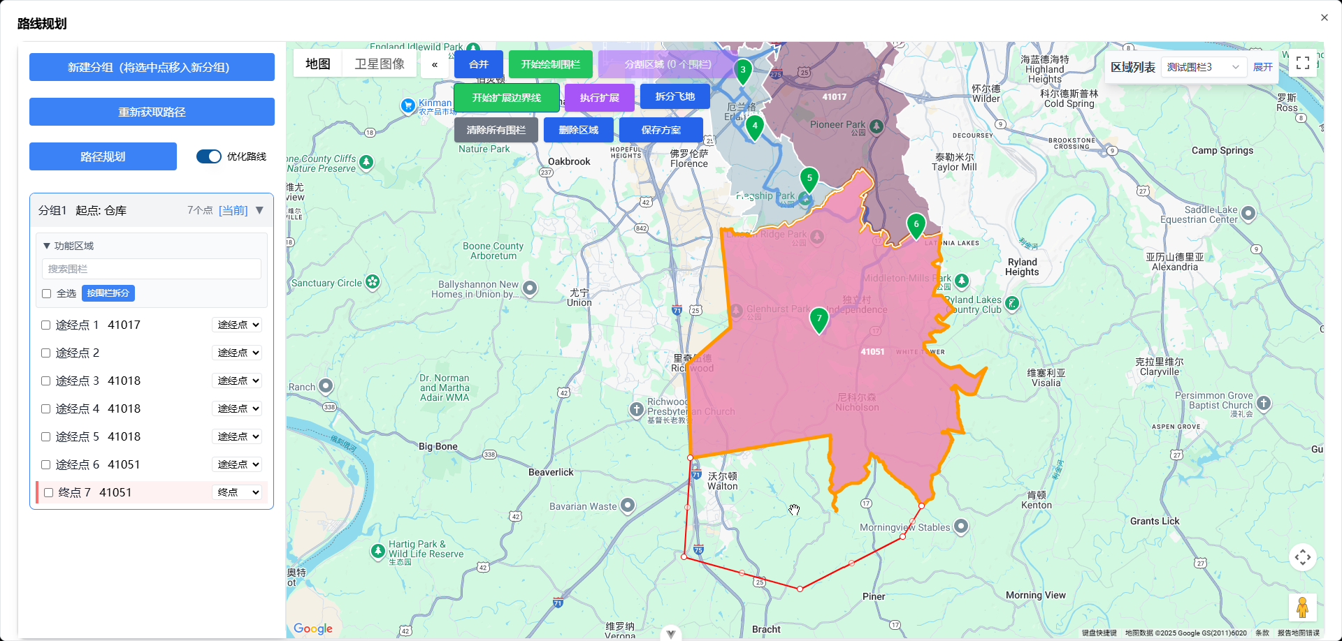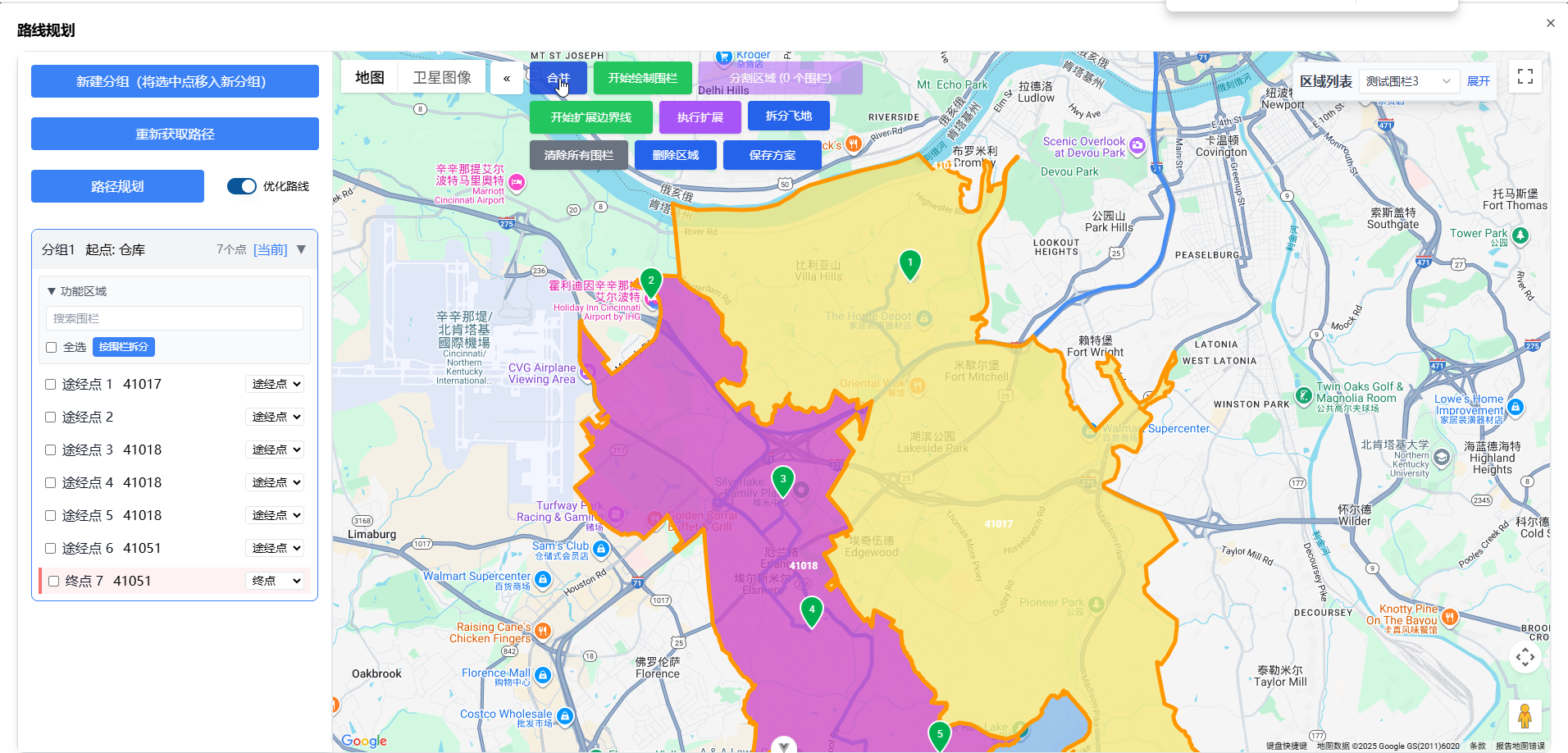 点击停止绘制围栏后,可以拖动点来继续调整分割线段