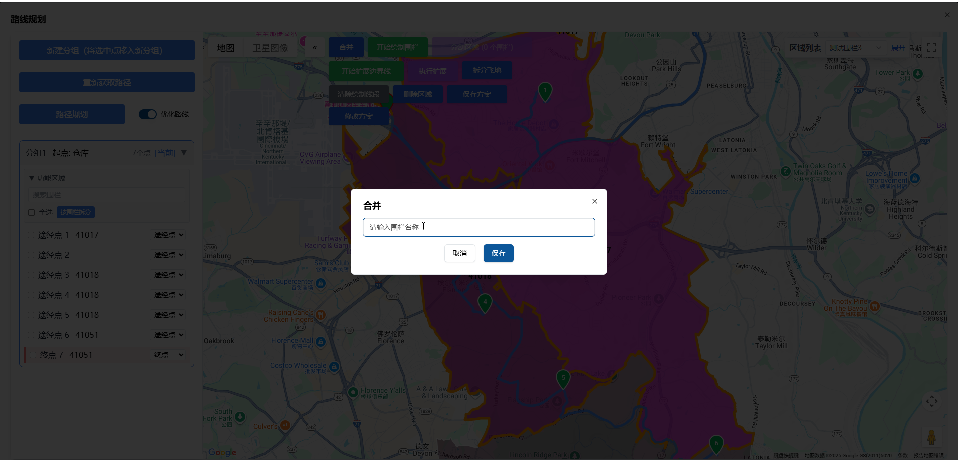 合并围栏功能允许用户将多个独立的围栏区域合并为一个整体,提高管理效率。支持围栏合并和分地合并两种操作模式。