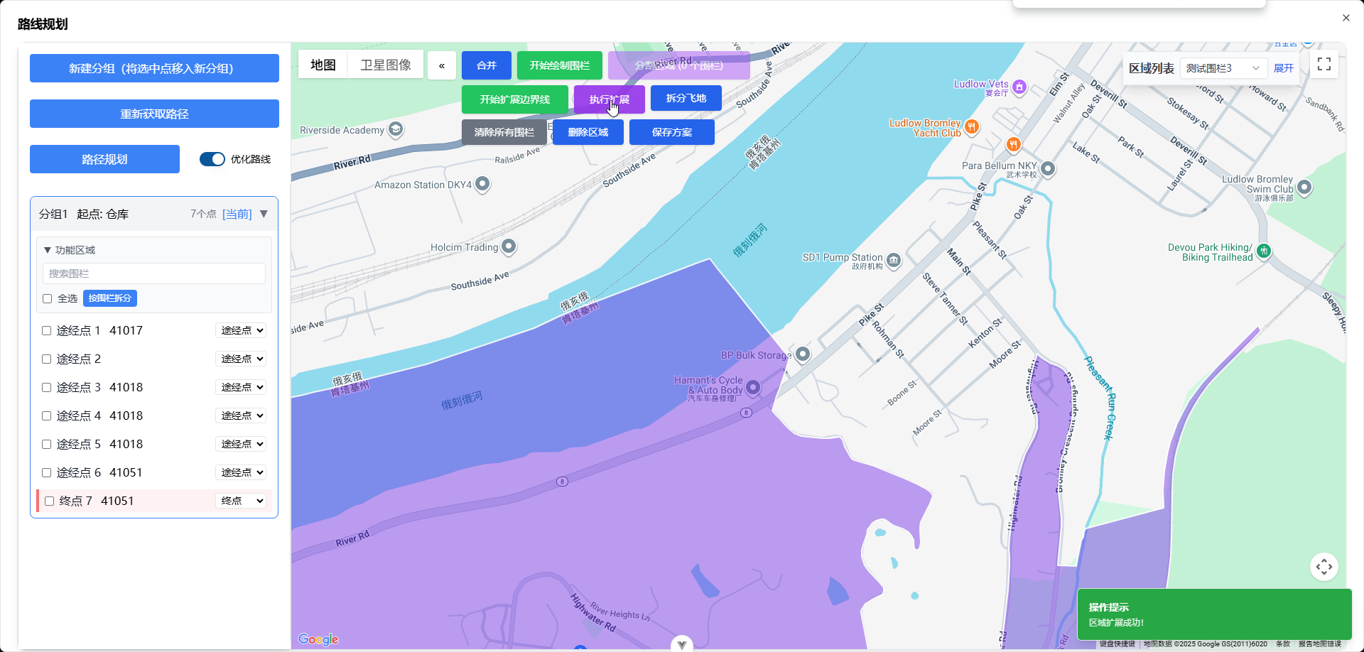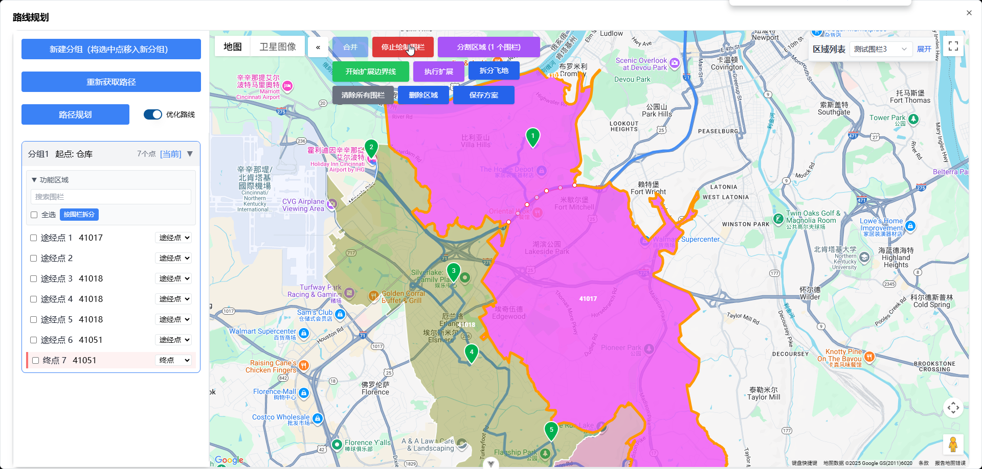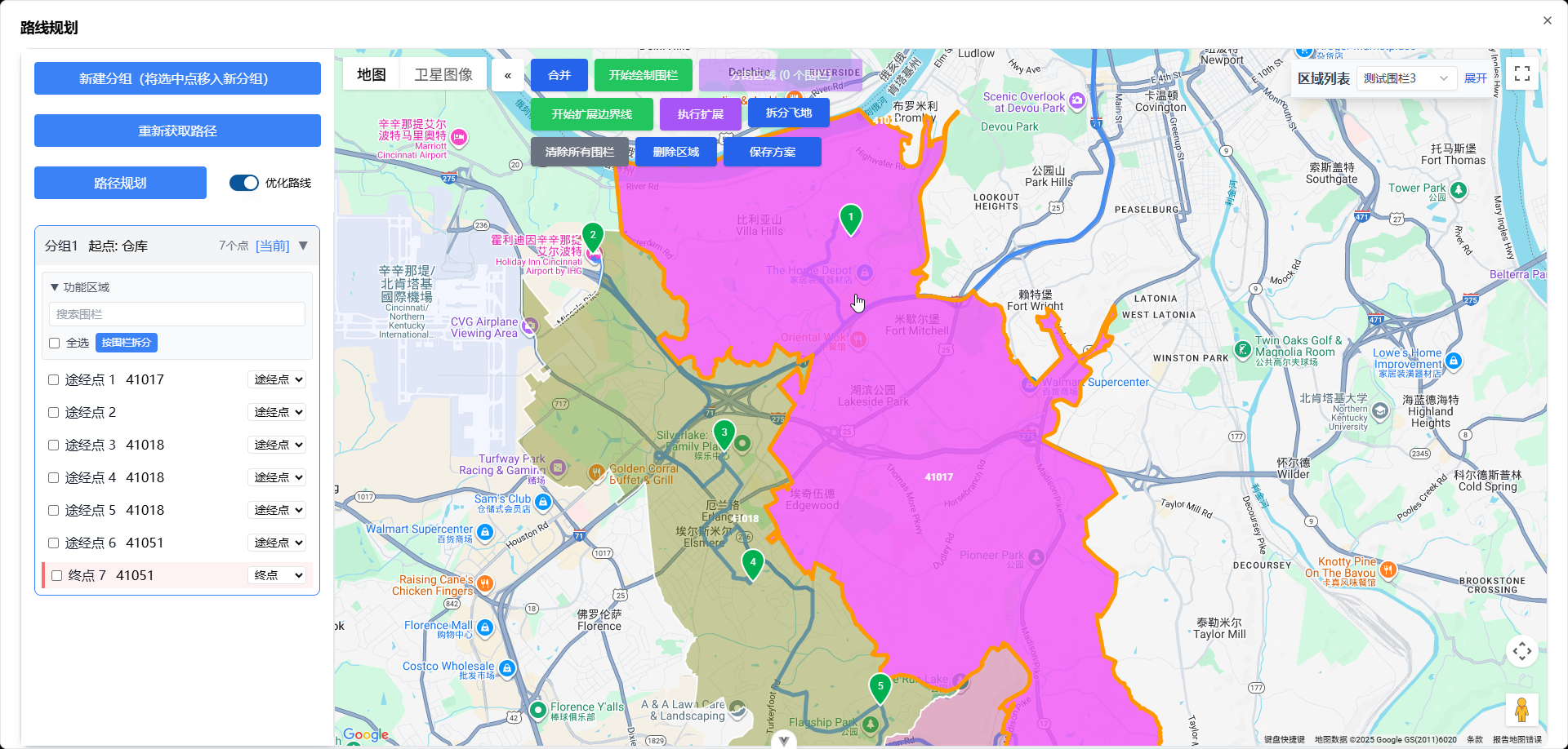 围栏合并功能的使用方法和注意事项,演示如何将多个围栏区域合并为一个整体。